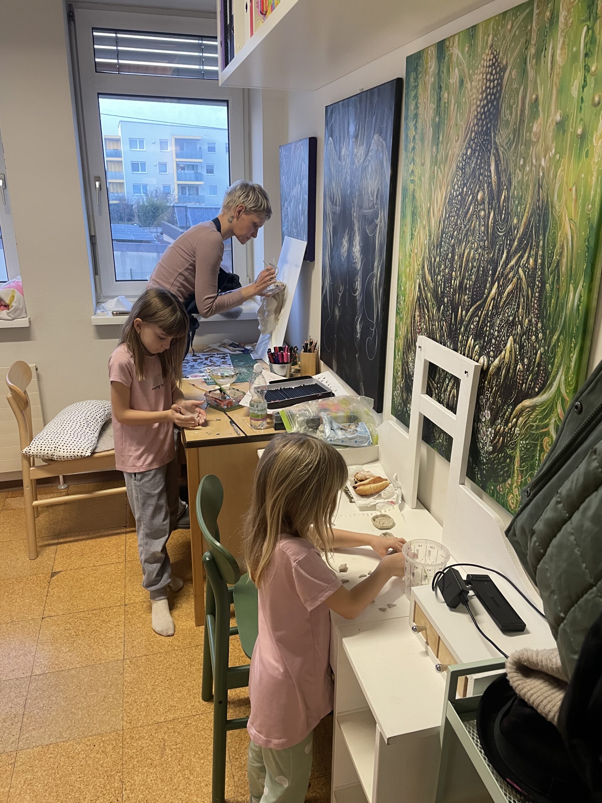 Mit unserem Umzug nach Marchtrenk im Februar 2026 hat sich nun unerwartet und innerhalb weniger Tage jetzt schon eine neue Möglichkeit ergeben: Durch die Unterstützung von Christians neuem Chef konnten wir einen kleinen, feinen künstlerischen Raum in einer ehemaligen Musikschule finden.